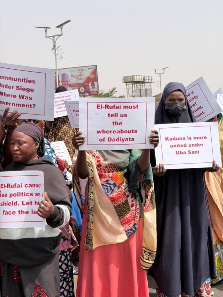 The protesters, who marched through parts of the state capital, called on security and anti-graft agencies to ensure that El-Rufai remains available for questioning over the prolonged disappearance of activist Dadiyata, insisting that justice must not be swept aside by silence.